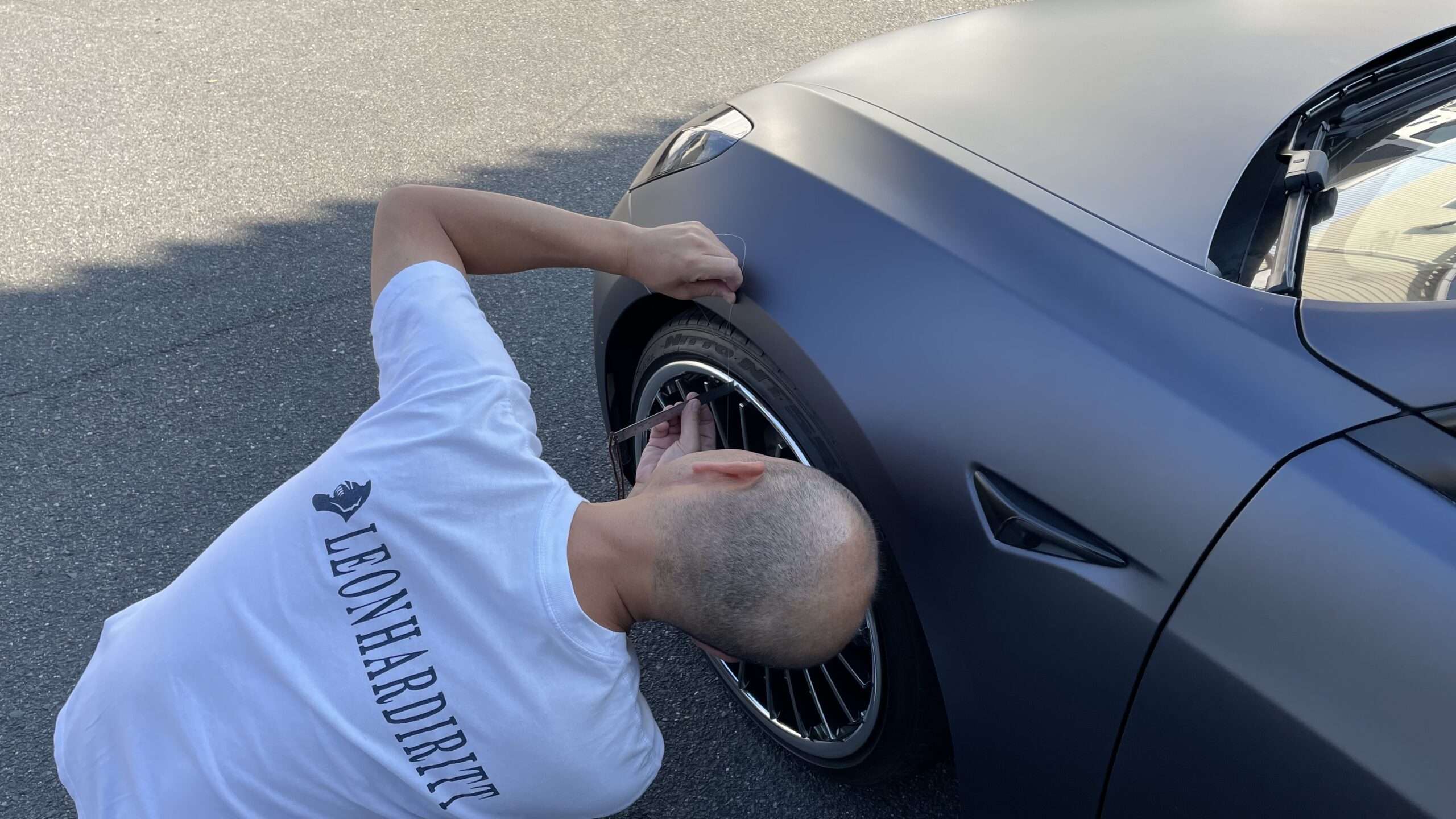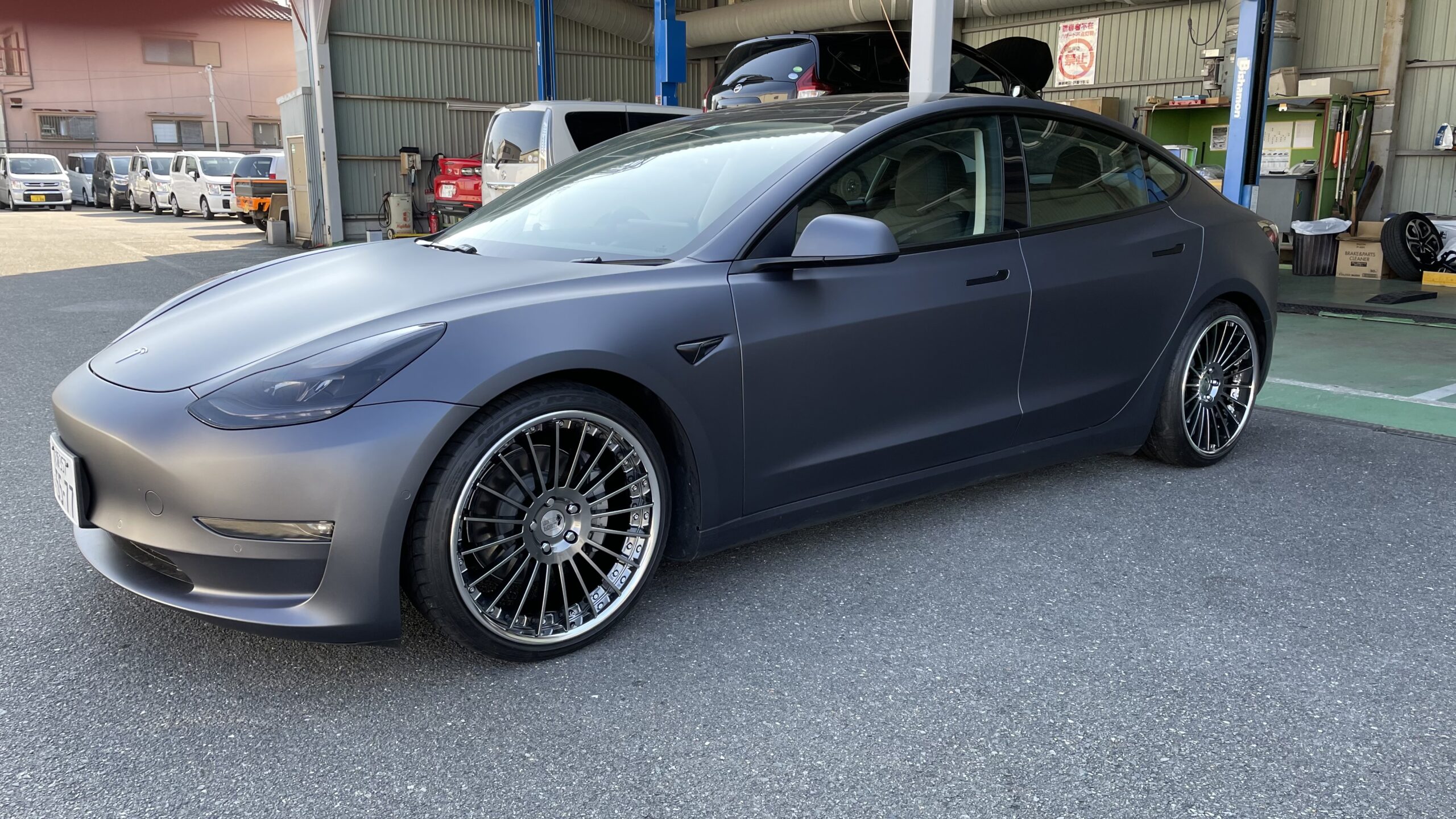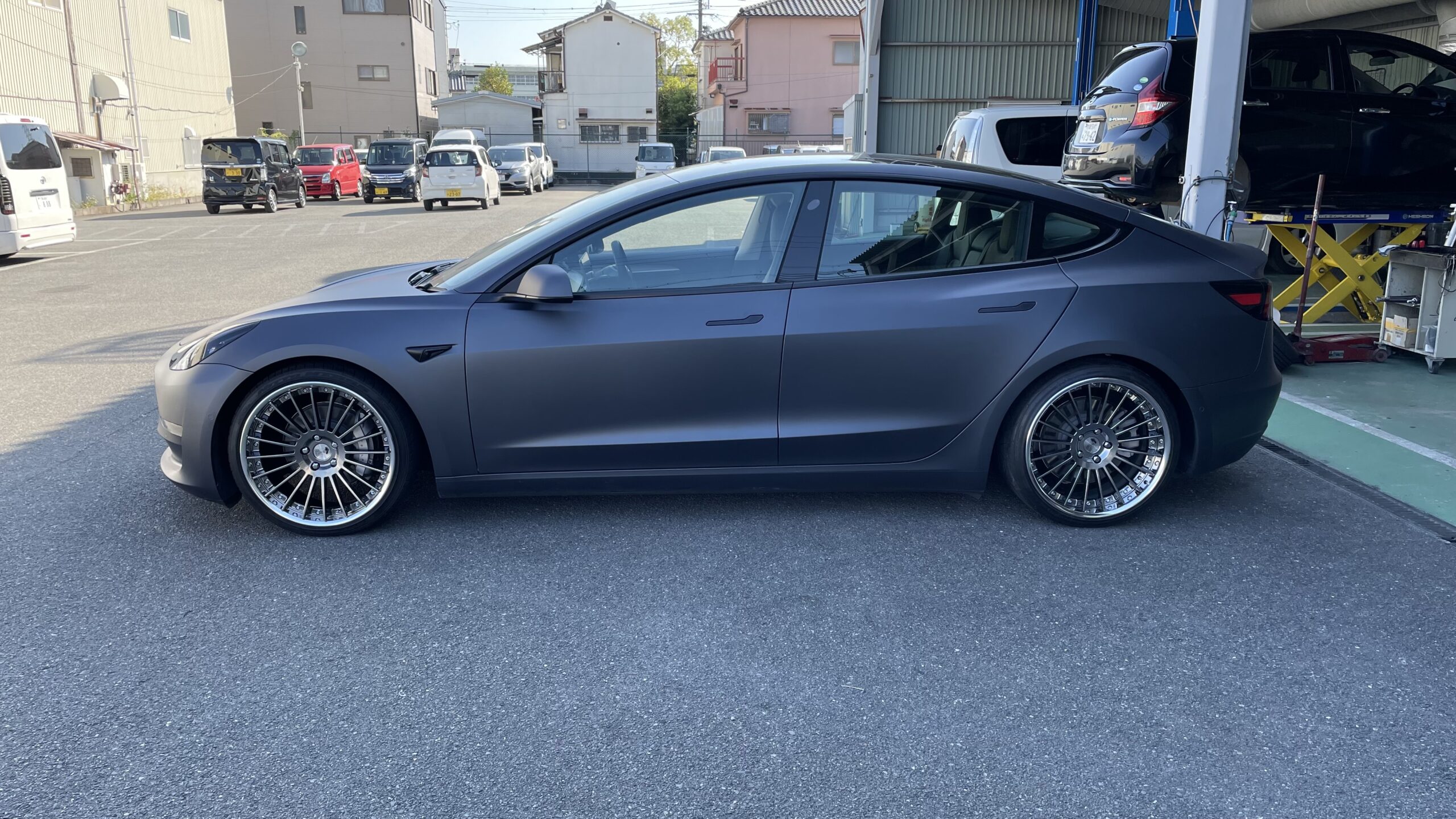 テスラモデル3 でローダウンした車両が少ないという事と、ホイール最終選定の為にお願い致しました